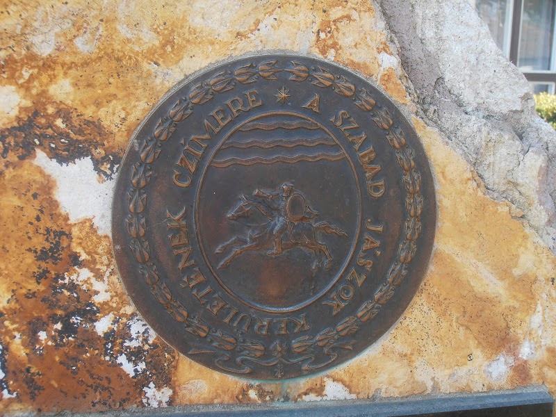Toásó Tibor kőszobrász alkotásának központi eleme a történelmi Magyarországot ábrázoló márványtábla. A tábla felett a község és a Jász Kerületek címere kaptak helyet.
