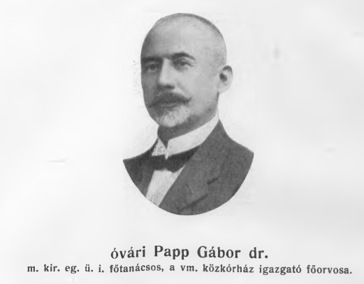 Átmeneti időre a megyei tiszti főorvost, dr. Lenk Gusztávot bízták meg a kórház igazgatásával, de már a megnyitás évének decemberében kórházigazgatónak dr. Óvári-Papp Gábor sebész főorvost nevezték ki, aki igen fiatalon kapta meg ezt a megbízást.