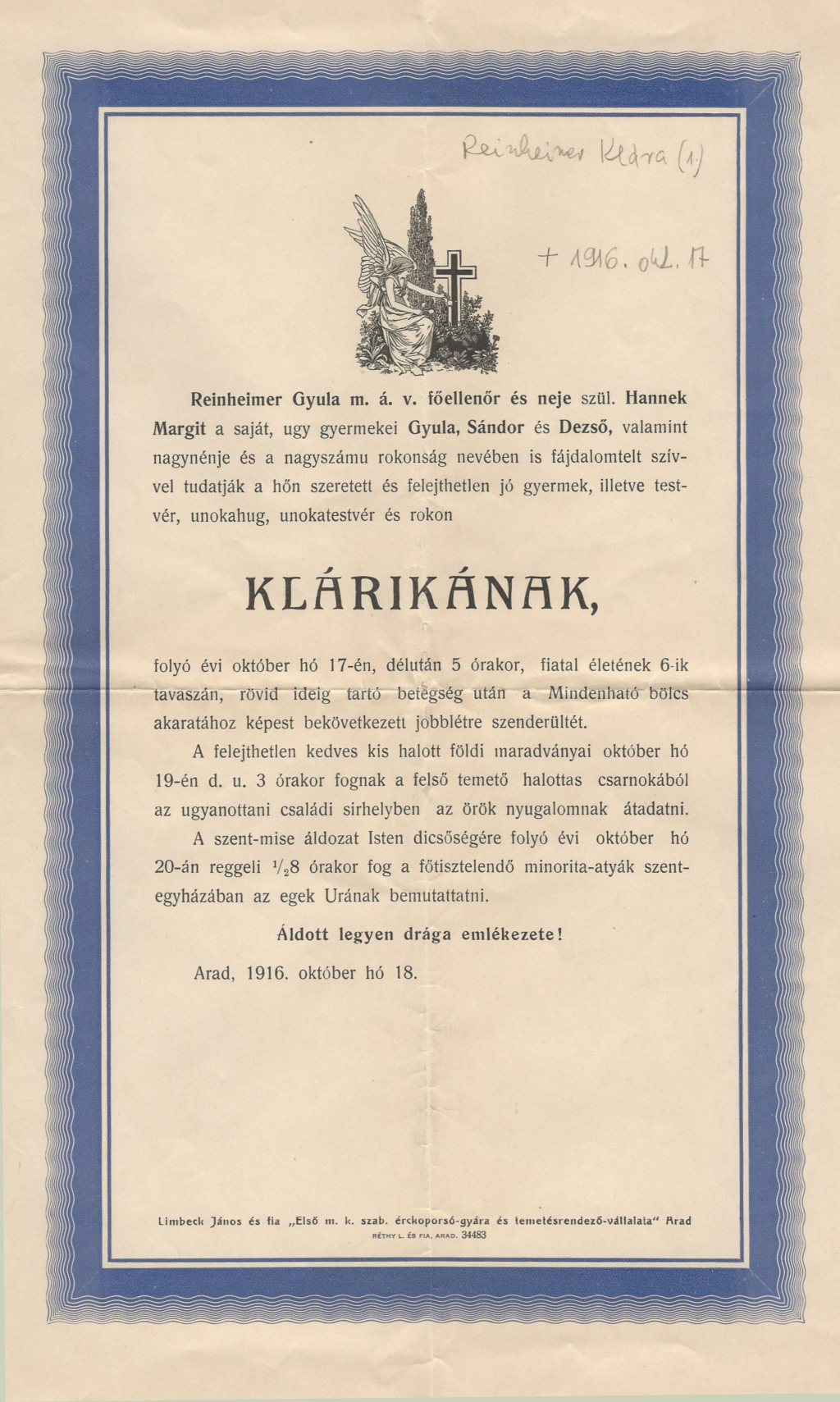 Négy gyermekük született: Gyula (1893-), Sándor (1895-), Dezső (1896) és Klára (1910-1916). Lányuk, sajnos, nem érte meg a felnőtt kort. Hat éves korában elhunyt.