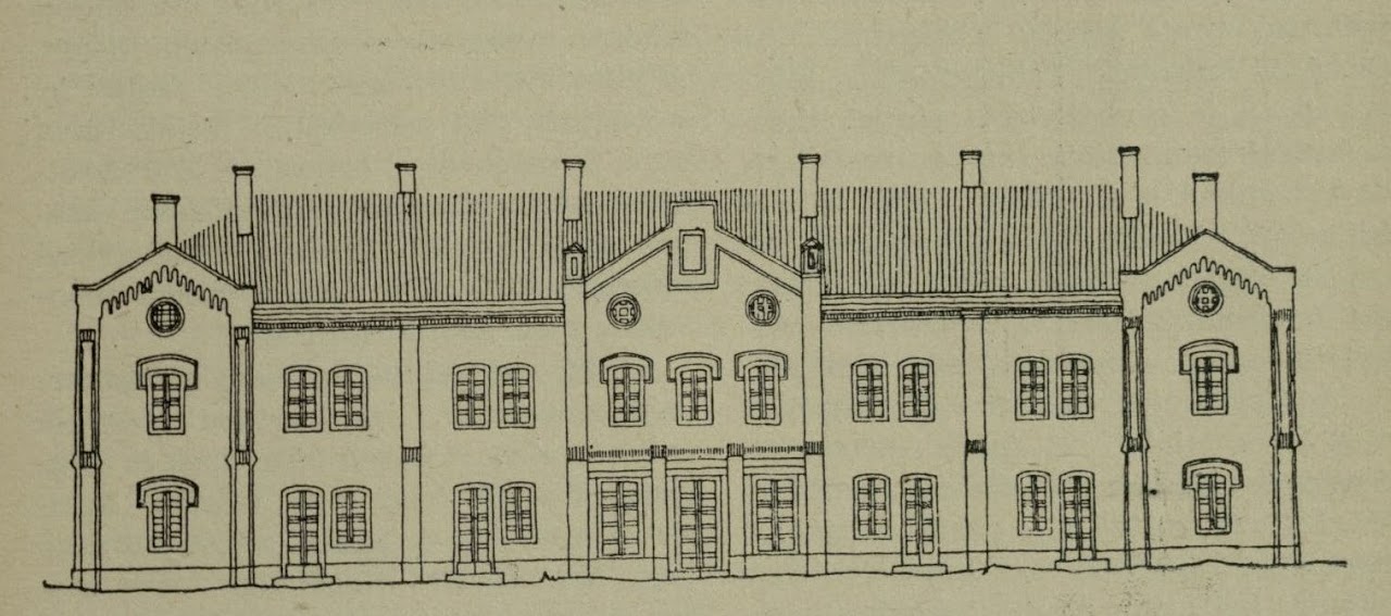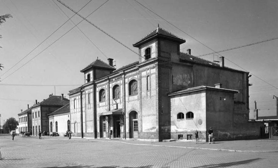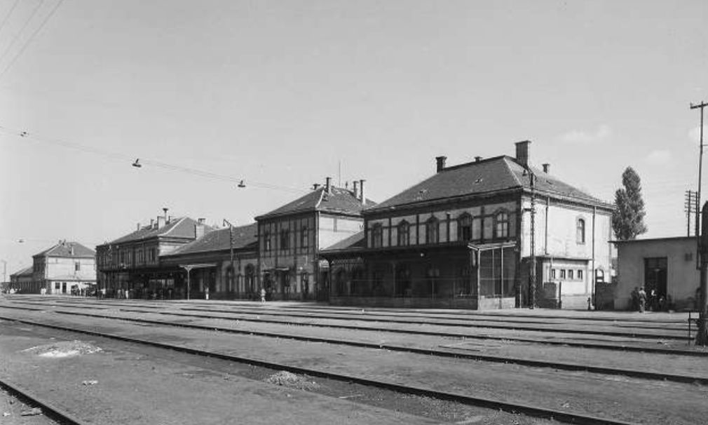 A Pfaff által tervezett állomásépület a város felől